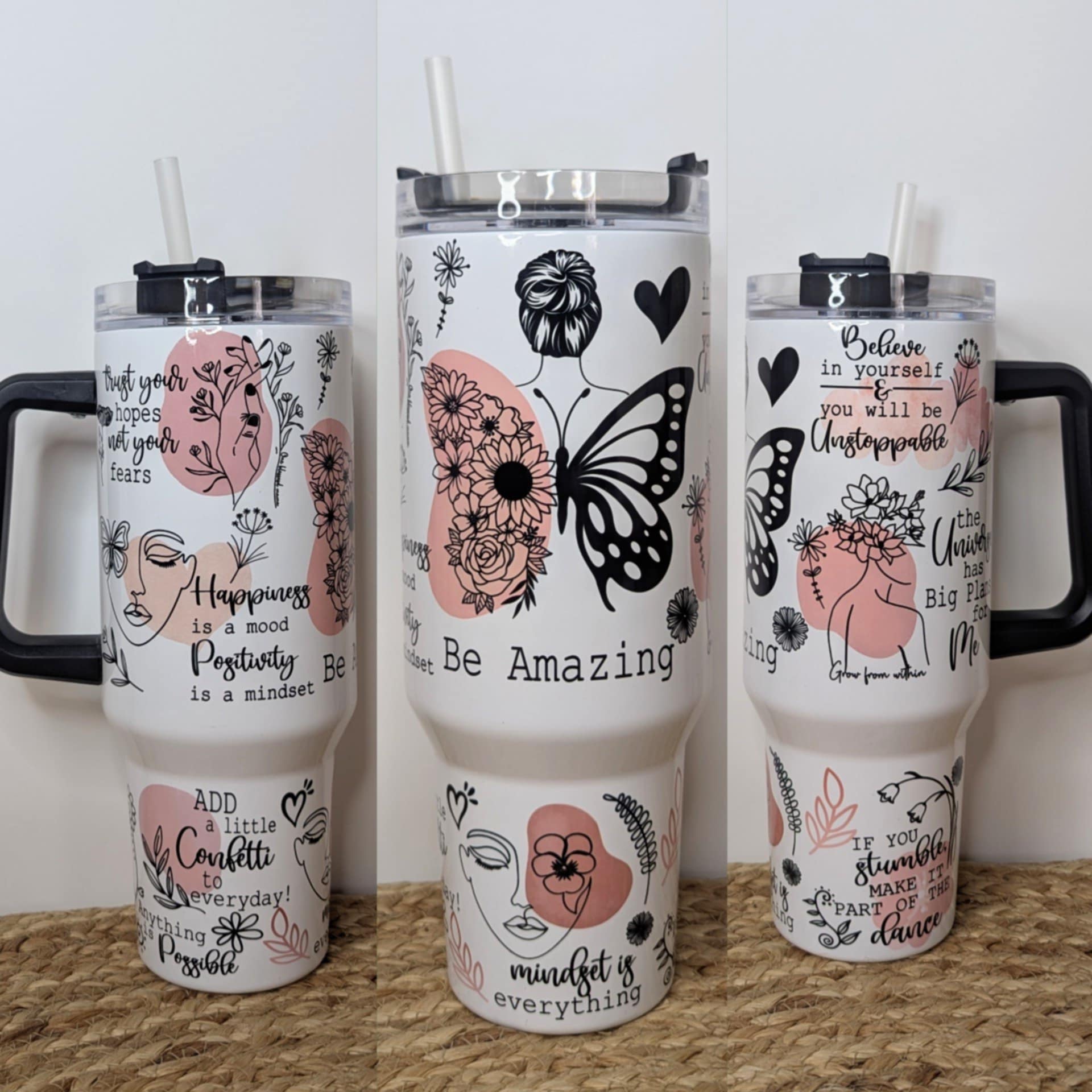 - Includes screw on lid and straw