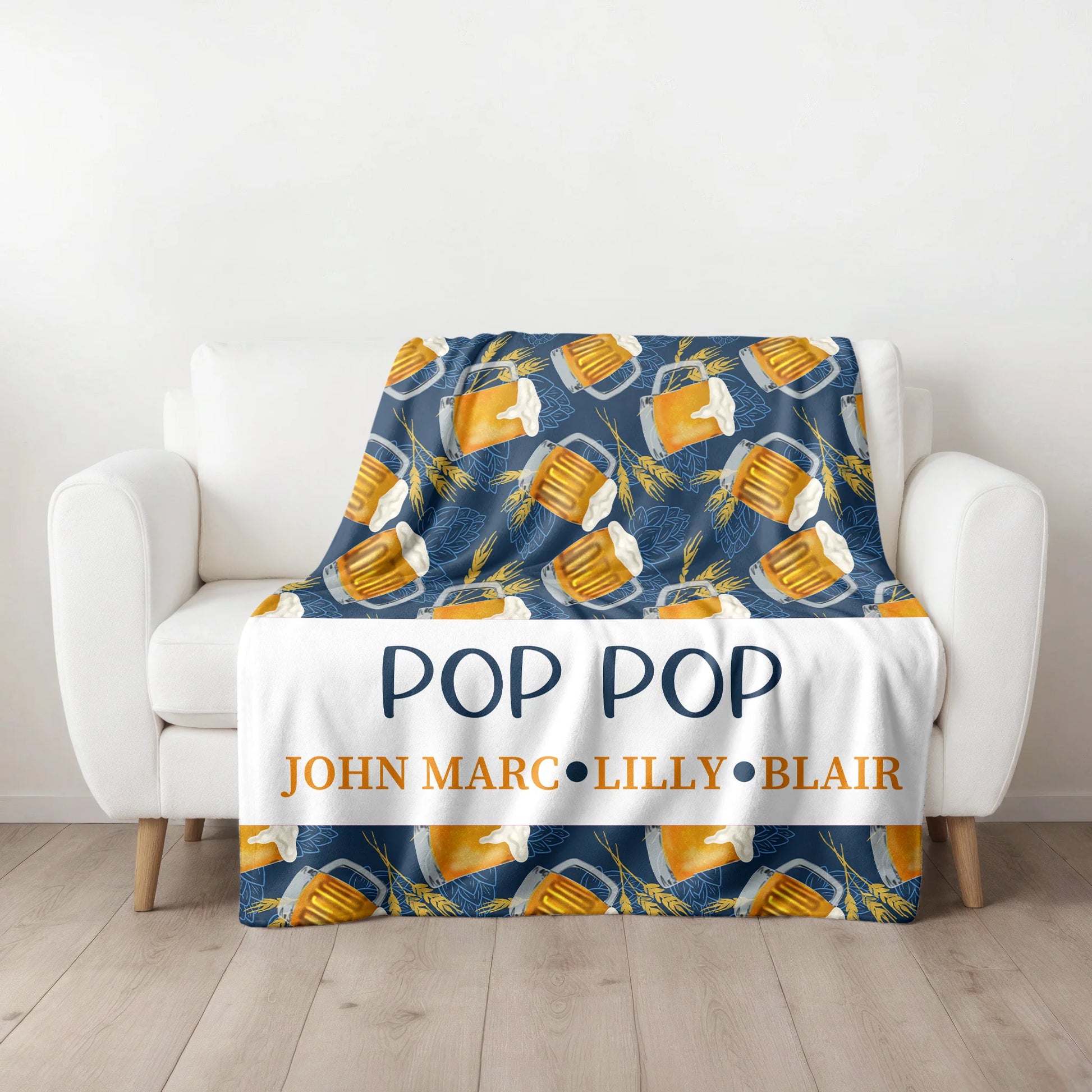 Elevate their beer drinking experience with our Personalized Beer Blanket! A perfect gift for the man in your life, available in 2 sizes (50x60 and 60x80) to fit any occasion. Cheers to the perfect Father's Day or Grandparent gift!