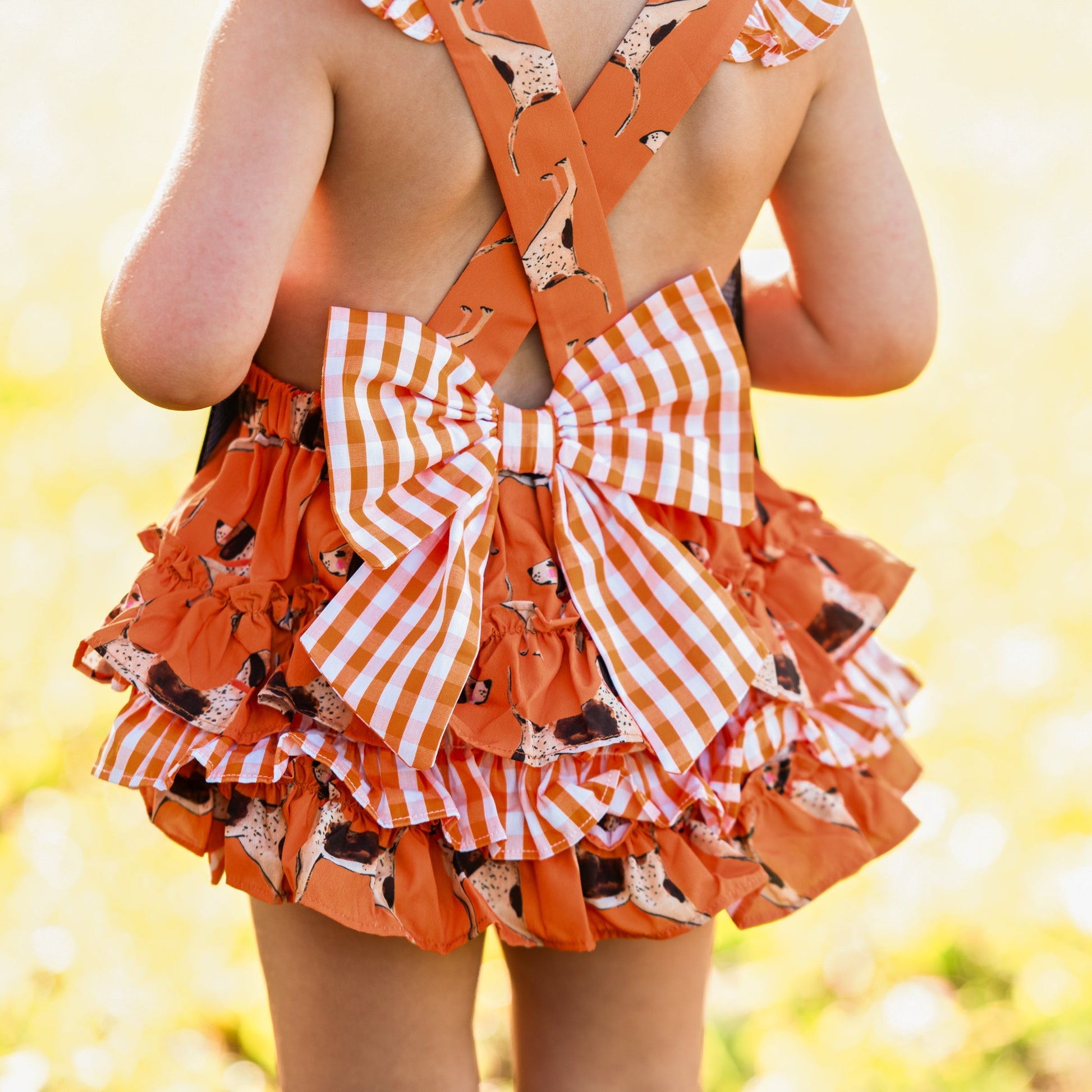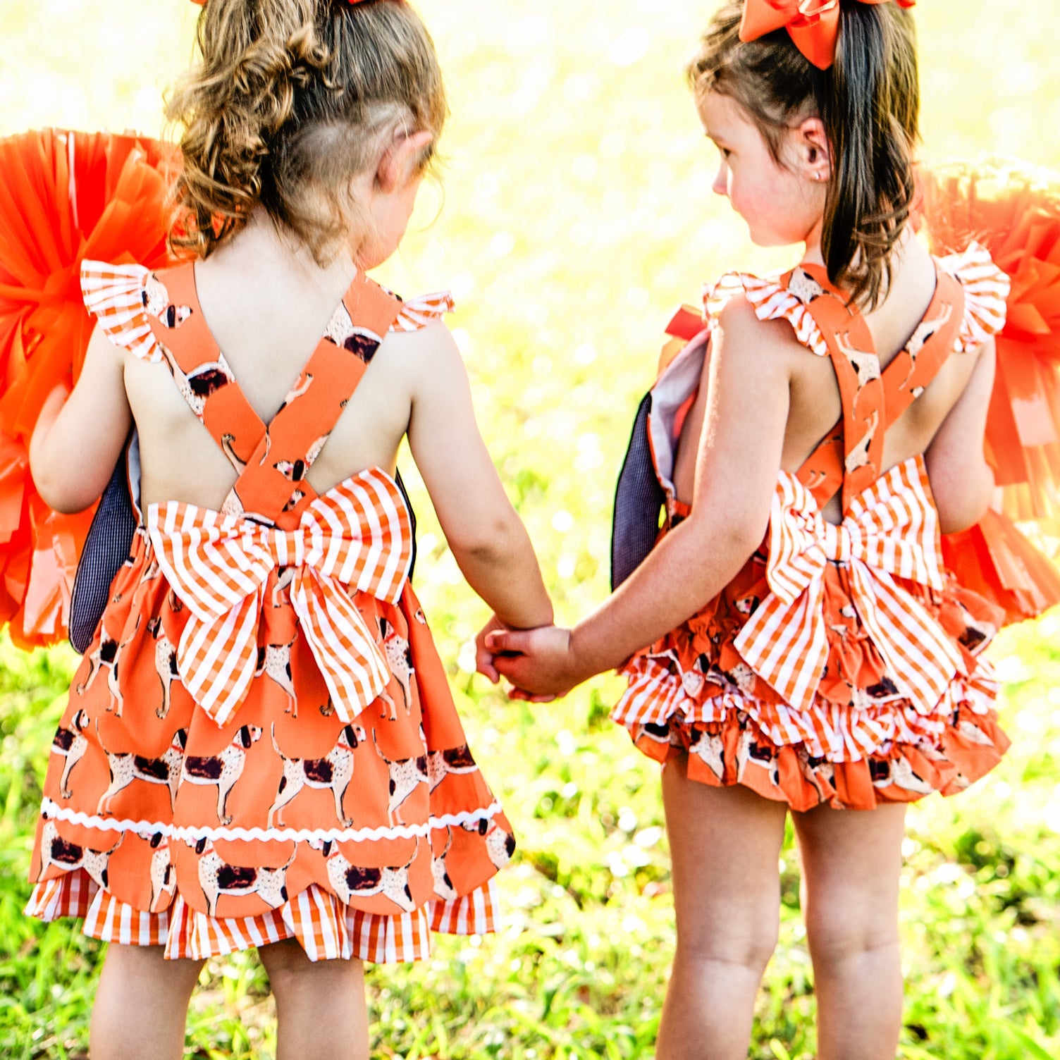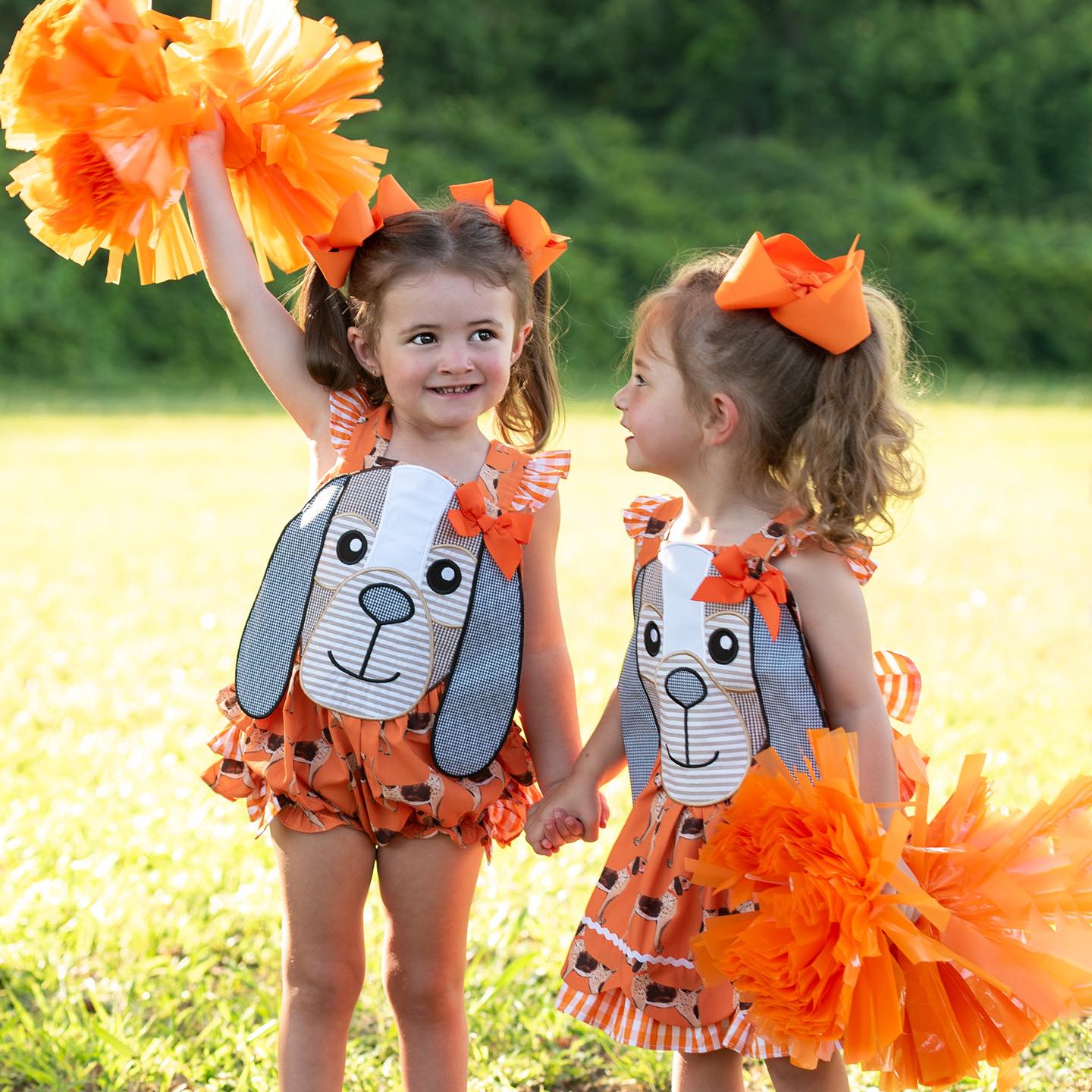 Be GameDay ready for Saturdays in the South with our Rocky Top Coonhound Bubble. This bubble features our custom designed Coonhound GameDay print by the talented Katherine Herrell Studio. Adjustable criss-cross straps button in the back.